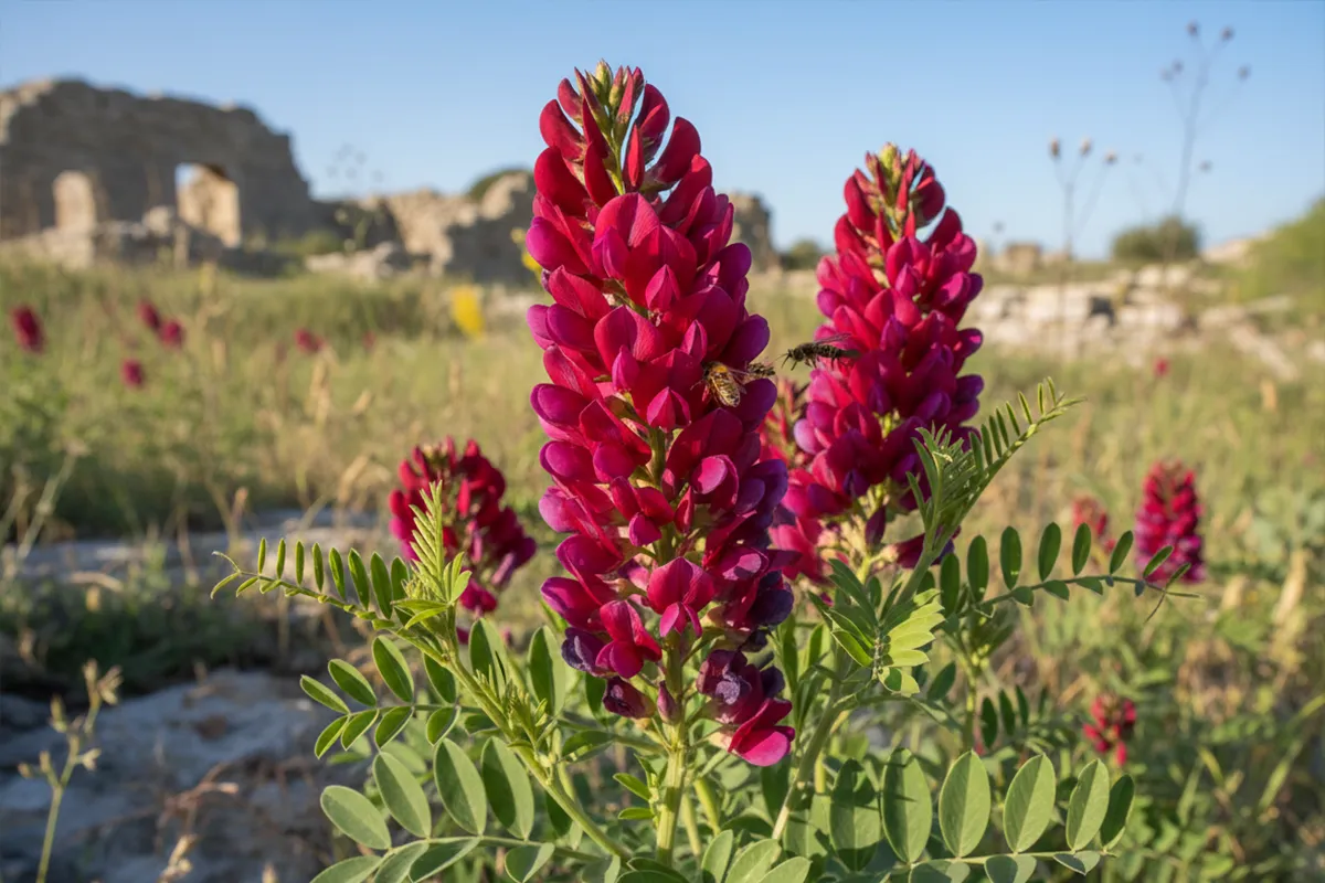 Il miele di sulla viene prodotto con il nettare della Hedysarum coronarium, una leguminosa diffusa nei campi siciliani di primavera.