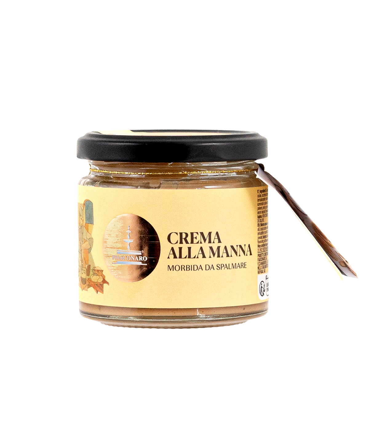 La Crema alla Manna | Fiasconaro è una raffinata crema spalmabile artigianale che unisce la maestria dolciaria siciliana alla creatività del celebre marchio di moda italiano. Prodotta a Castelbuono, nel cuore delle Madonie, rappresenta un autentico omaggio alla manna siciliana, una linfa naturale che stilla dai frassini locali e che da secoli è apprezzata per il suo sapore dolce e delicato.