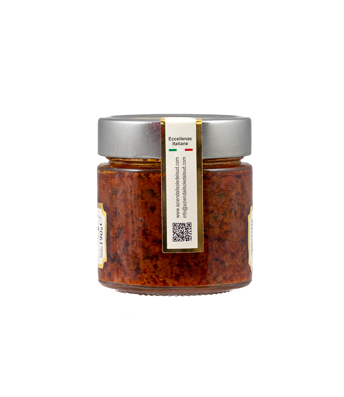 Il Pesto Trapanese de Il Sole del Sud è una ricetta iconica della Sicilia occidentale, reinterpretata con la freschezza e la cura artigianale tipica della provincia di Enna. Questa conserva è un condimento pronto, ricco e saporito, ideale per portare in tavola i profumi intensi della dieta mediterranea.