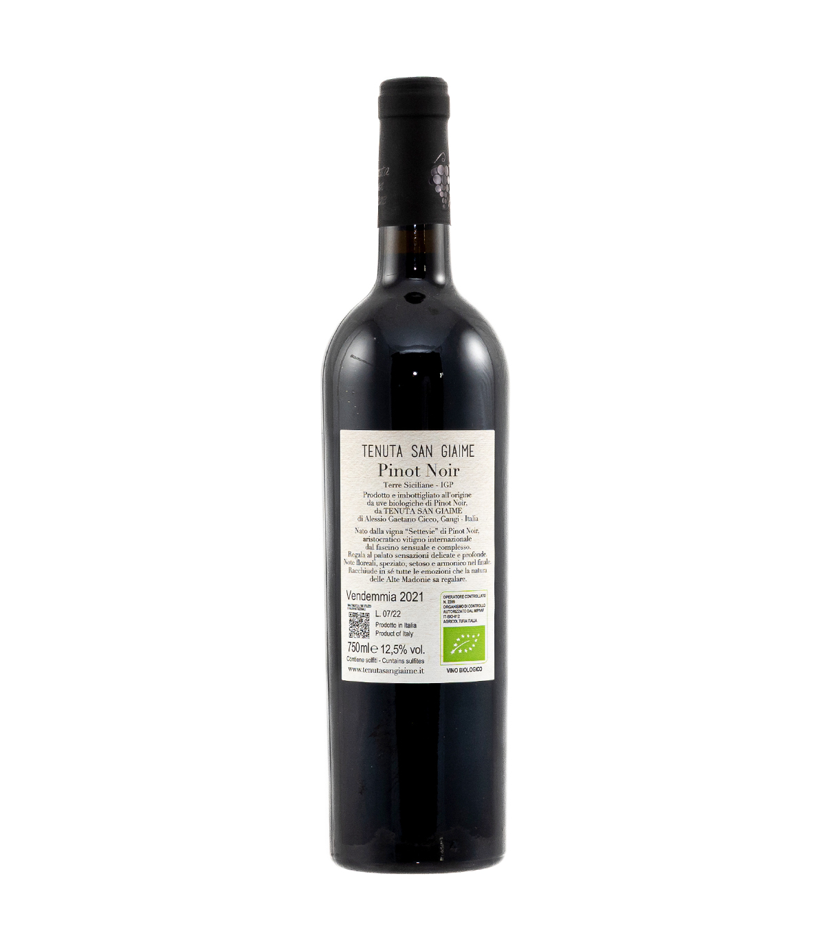La vigna Settevie, esposta a Sud-Est con vista Etna, si estende su un terreno ben drenato e ventilato: un microclima ideale per un vitigno esigente come il Pinot Noir. Qui nasce un vino che unisce tradizione e innovazione, frutto di una sfida vinta con passione dal produttore Salvatore, che ha voluto dimostrare come anche in Sicilia sia possibile ottenere un Pinot Noir di straordinaria raffinatezza.