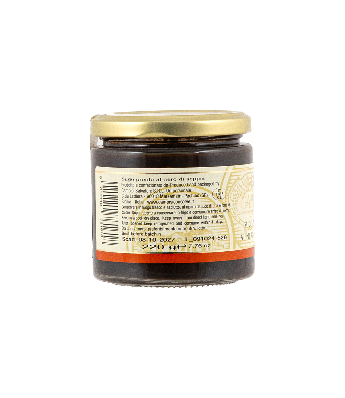 Il Sugo al Nero di Seppia con Pomodoro Ciliegino è una prelibatezza firmata Campisi, azienda che da generazioni valorizza i sapori del mare e della terra di Sicilia attraverso lavorazioni artigianali e ingredienti di qualità.